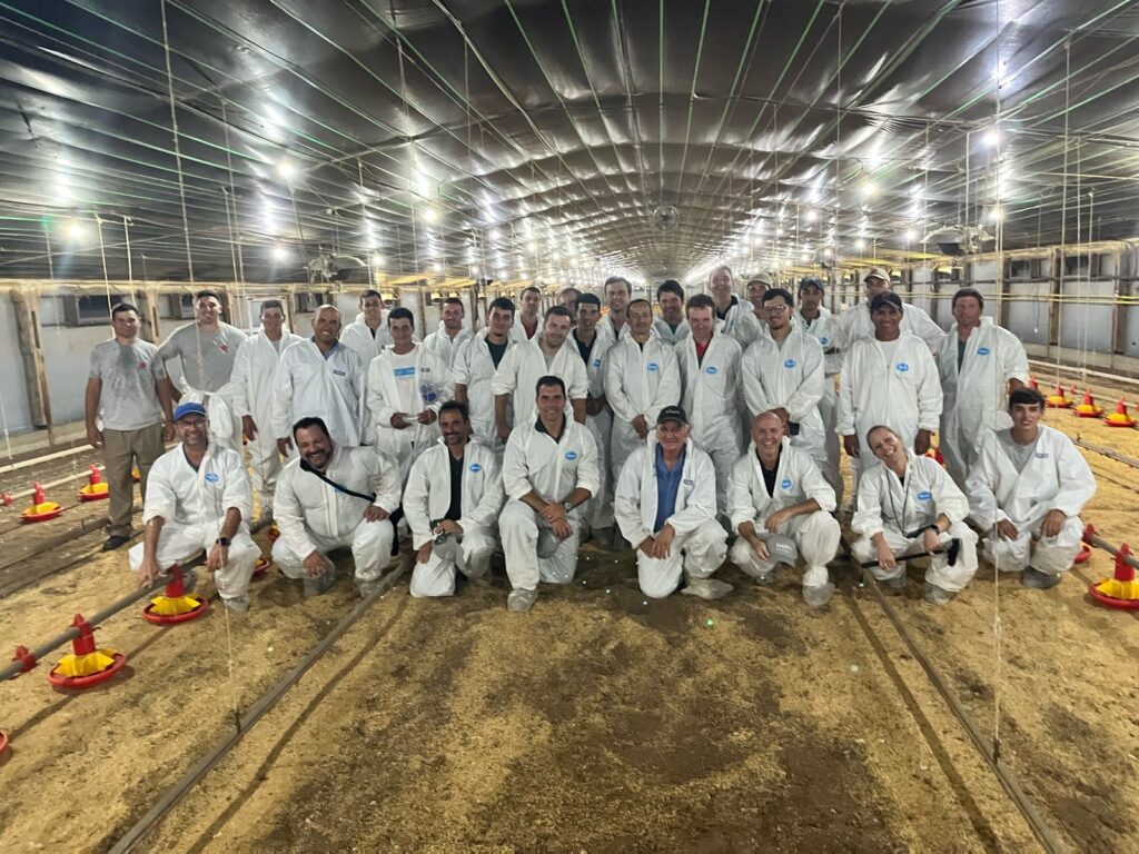 El equipo de Aviagen SAEB — junto con Luis Mac Goey, gerente de ventas de Aviagen Argentina, y Alejandro Golin, director general  —resaltaron la  importancia de la ventilación mejorada y el cuidado del pollo de engorde en su  etapa temprana.