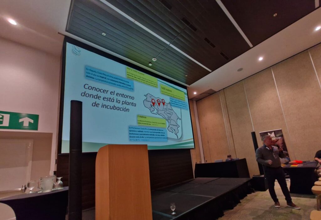 Guillermo Reyes, especialista en Incubación de Aviagen, presentó el tema “Manejo de incubadoras multietapas”. Ofreció recomendaciones para ayudar al productor a mejorar la incubabilidad y calidad general del pollito. Reyes subrayó la importancia de adaptar estrategias de incubación para el clima local, comprendiendo cómo operan las diferentes marcas de incubadoras, manteniendo control preciso sobre la temperatura y humedad, y prestando particular atención a la fase de nacimiento – un breve pero crítico periodo donde pueden surgir muchos problemas comunes.