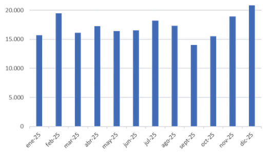 El año estuvo marcado por dos etapas diferenciadas antes y después del brote de influenza aviar de agosto. A pesar de ello, el promedio mensual exportado se mantuvo estable en torno a 17.200 toneladas.