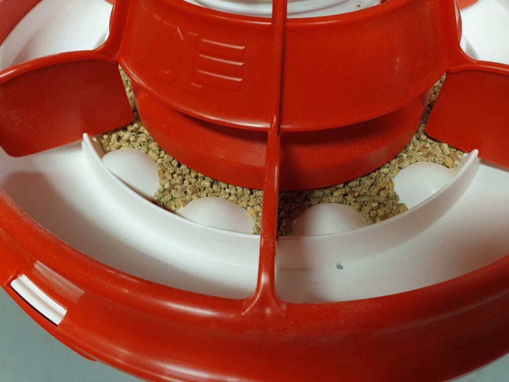 El Gallox está equipado con “tazas” y un reborde adicional, por lo que al dosificarse el alimento no se va más hacia dentro del recipiente inferior. Los machos tienen que sacar el alimento de las pequeñas “tazas” de una manera específica, por lo tanto les toma más tiempo comerlo. Esto proporciona más tranquilidad en la caseta durante la alimentación. El diseño sin rejilla garantiza que no se dañen las crestas y que los machos tengan un acceso óptimo al alimento.