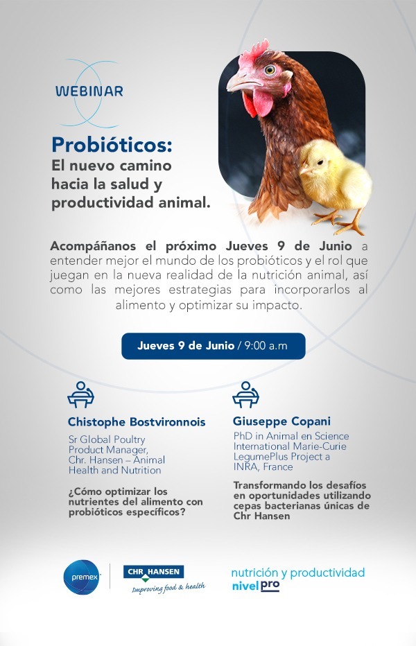 Hablamos con la M.V Laura Guerrero de Chr Hansen Colombia quien nos adelantó la idea tras este evento que se realizará el próximo Jueves 9 de Junio vía. zoom a las 9am de Colombia, 11am de Argentina, 8am México. El mismo tiene como objetivo permitir entender mejor el mundo de los probióticos y el rol que juegan en la nueva realidad de la producción avícola.