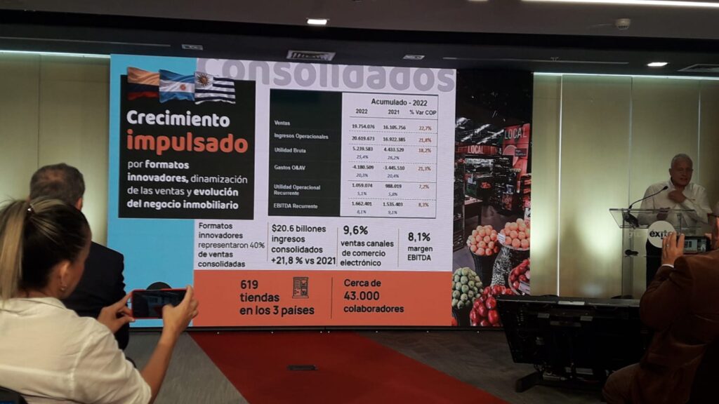 Foto: Carlos Mario Giraldo, presidente del Grupo Éxito, durante la presentación a la prensa de los resultados corporativos de 2022, realizada este 28 de febrero.