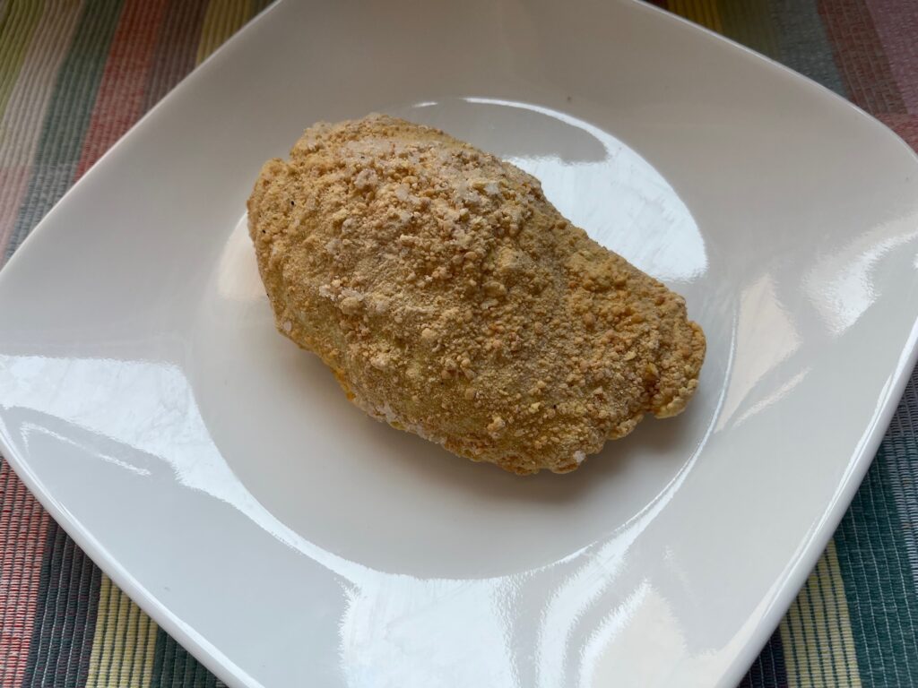 Estos productos de pollo crudo rellenos empanados están predorados y pueden parecer cocinados, pero en realidad el pollo está crudo y se rellenan con ingredientes, como verduras crudas, mantequilla, queso o productos cárnicos como jamón. Por lo general, el consumidor los cocina a partir del producto congelado, lo que aumenta el riesgo de que no alcance la temperatura interna necesaria para destruir la salmonela. Además, puede ser difícil para el consumidor determinar la temperatura interna precisa de estos productos porque contienen múltiples ingredientes que pueden cocinarse a diferentes velocidades.