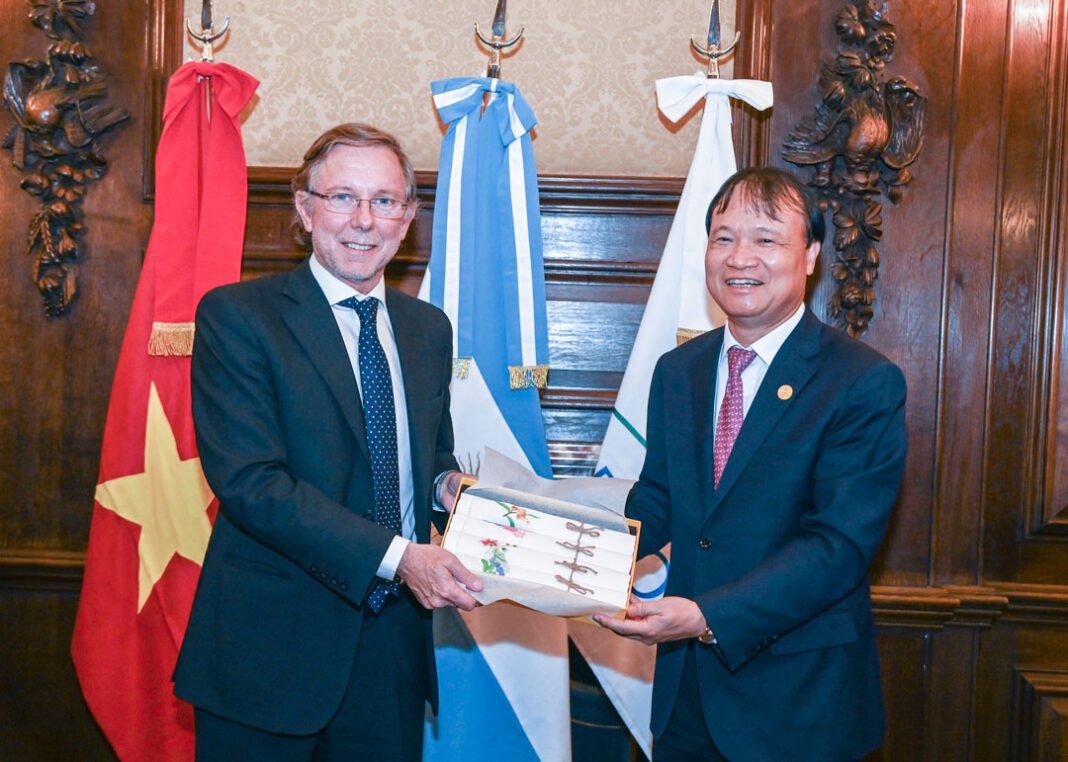El secretario de Agricultura, Ganadería y Pesca de la Nación, Juan José Bahillo, mantuvo un encuentro bilateral con el viceministro de Agricultura y Desarrollo Rural de Vietnam, Tran Tanh Nam, y el viceministro de Industria y Comercio de ese país, Do Thang Hai, con el objetivo de estrechar los lazos comerciales y de cooperación entre los dos países. Junto con la secretaria de Relaciones Económicas Internacionales, Cecilia Todesca, se buscó establecer mecanismos de intercambio de información para habilitar la apertura de nuevos mercados para la producción agroindustrial argentina.
