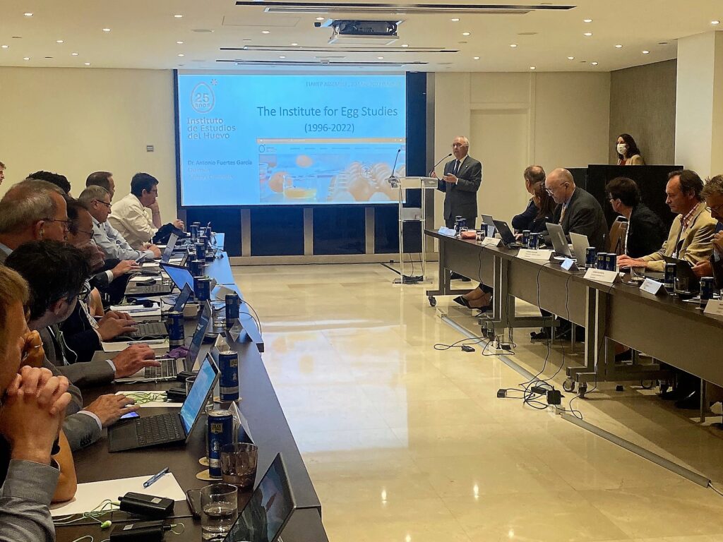 Intervino también en la parte final de la asamblea el presidente del Consejo asesor del Instituto de Estudios del Huevo, Dr. Antonio Fuertes, que explicó la organización del Instituto, sus actividades y logros en sus 26 años de funcionamiento.