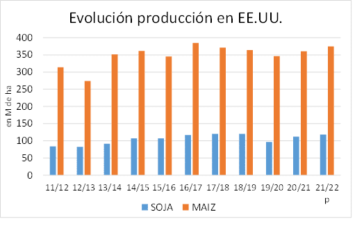 Con la caída en la cosecha estadounidense también hubo otros ajustes en el balance de oferta y demanda que dejo sin cambios las proyecciones de stocks 21/22 en 4,22 M de ton, el nivel más bajo de los últimos 7 años.